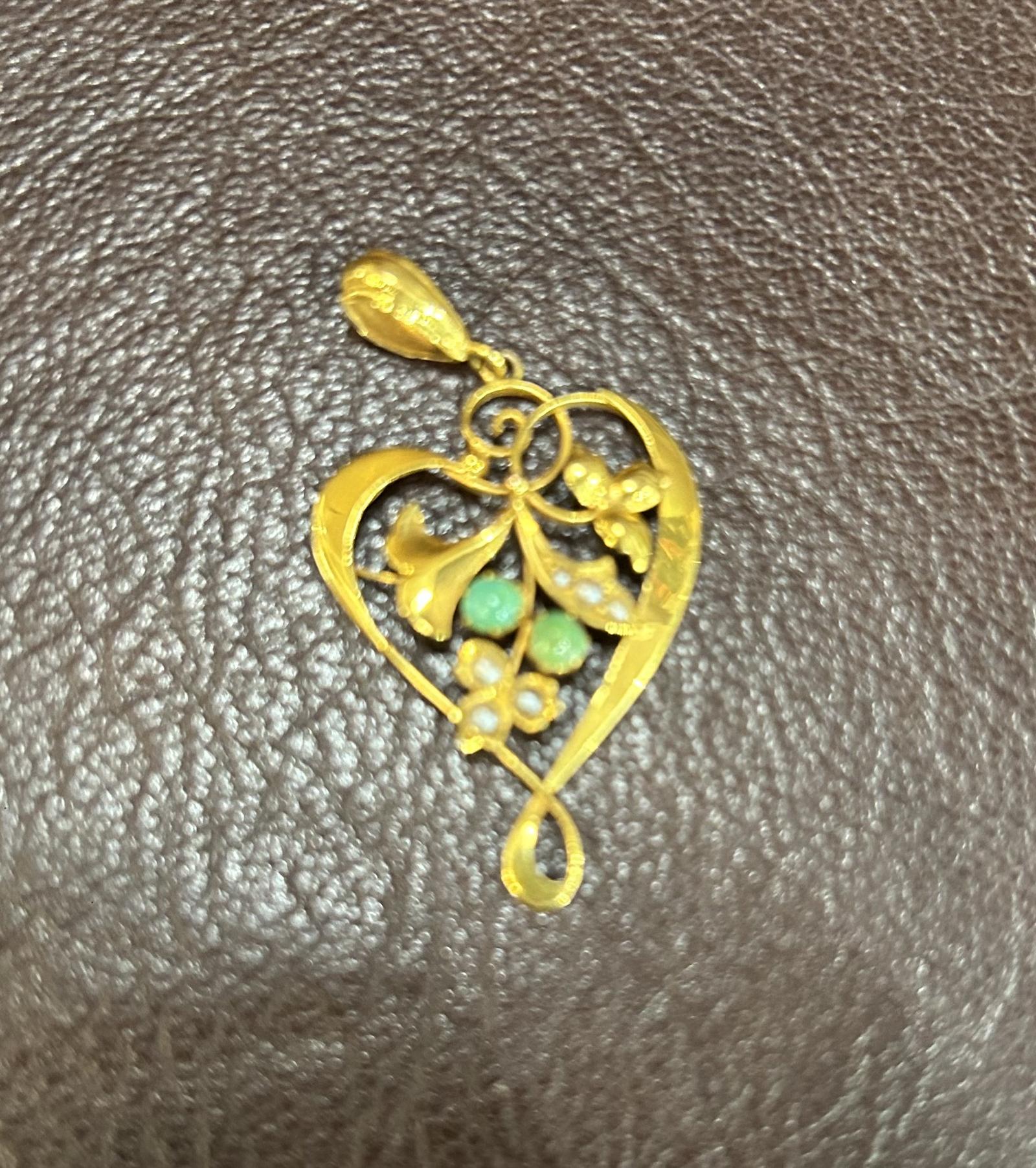9ct. Yellow Gold Turquoise and Pearl Pendant