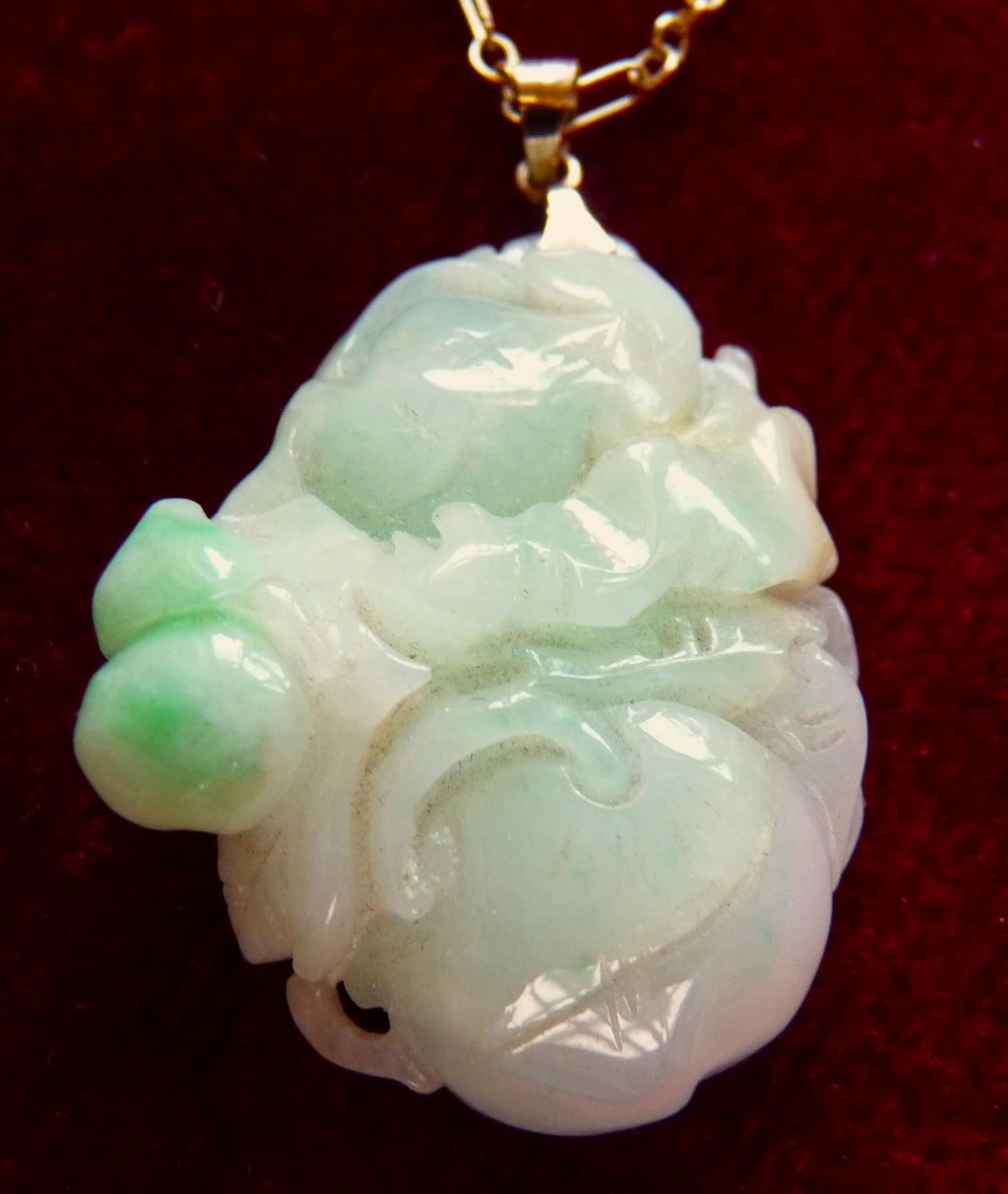 Jade Necklace: A 9ct Gold Chain with Carved Green Jade Pendant