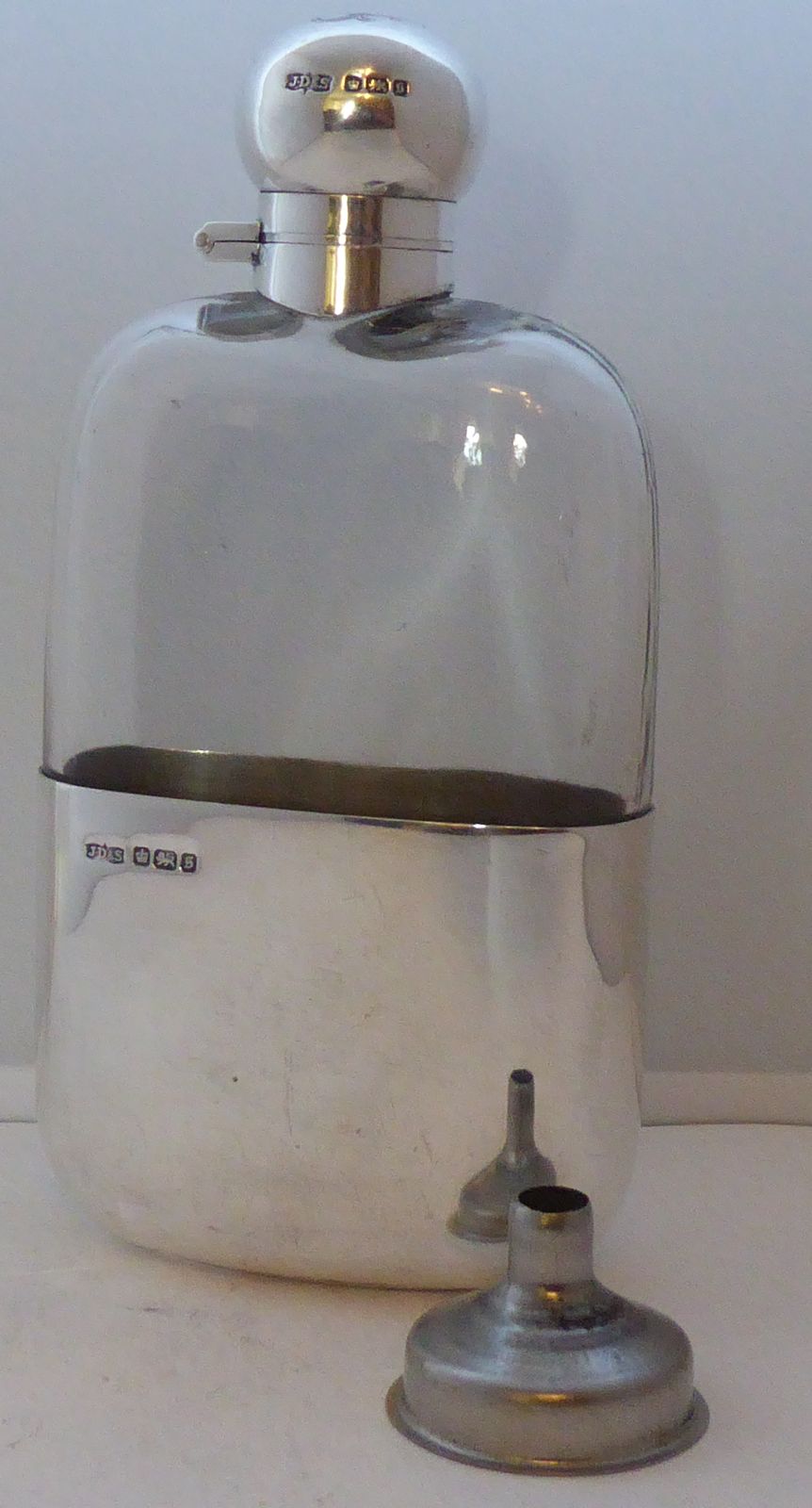 James Dixon 1910 Antique Solid Hallmarked Silver Leather Bound Glass Hip Flask