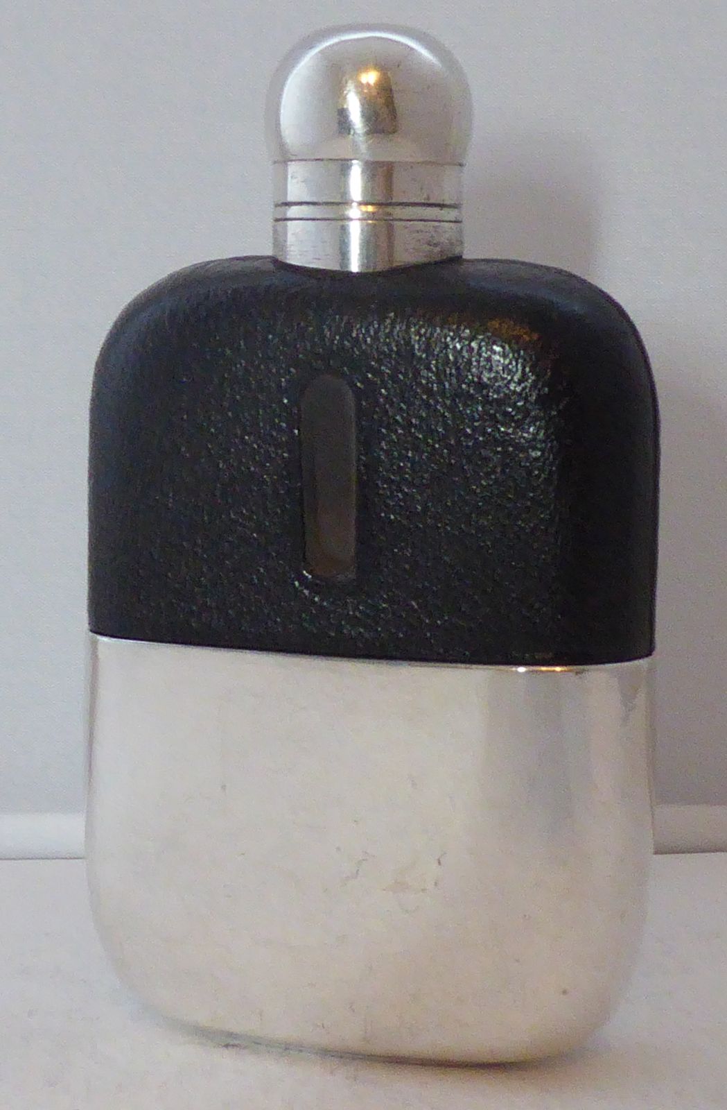 James Dixon 1930s Silver Plated Leather Bound Glass Hip Flask