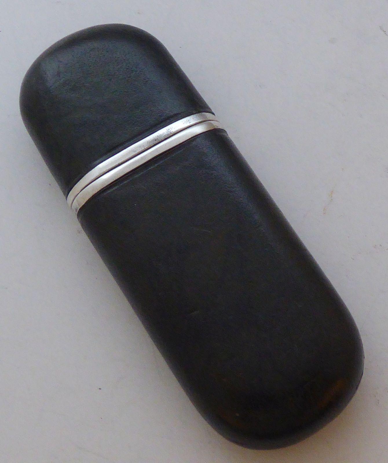James Dixon Silver Plated Leather Bound Spectacle Case Hip Flask