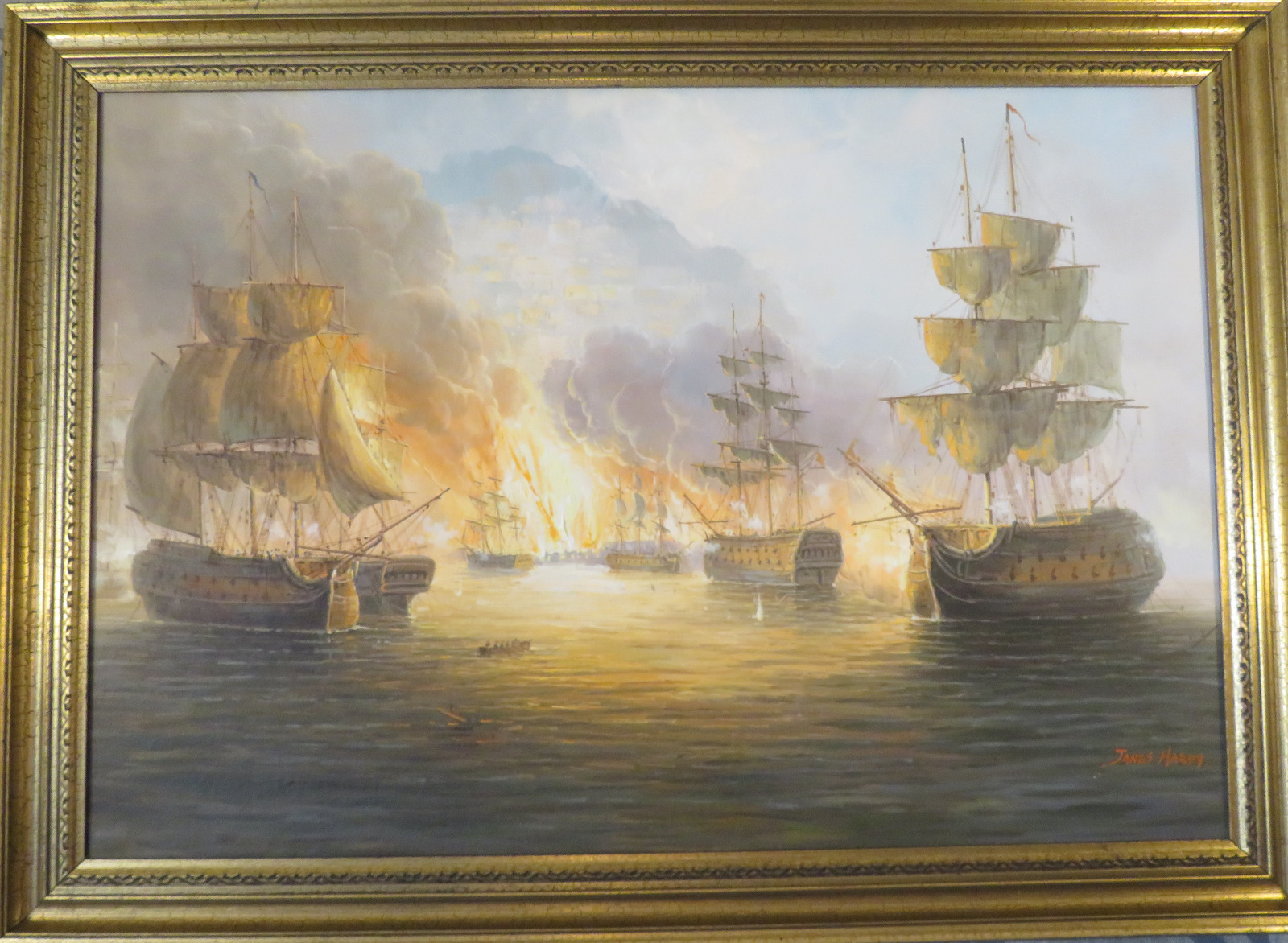 James Hardy Large Sea Battle Oil on Board
