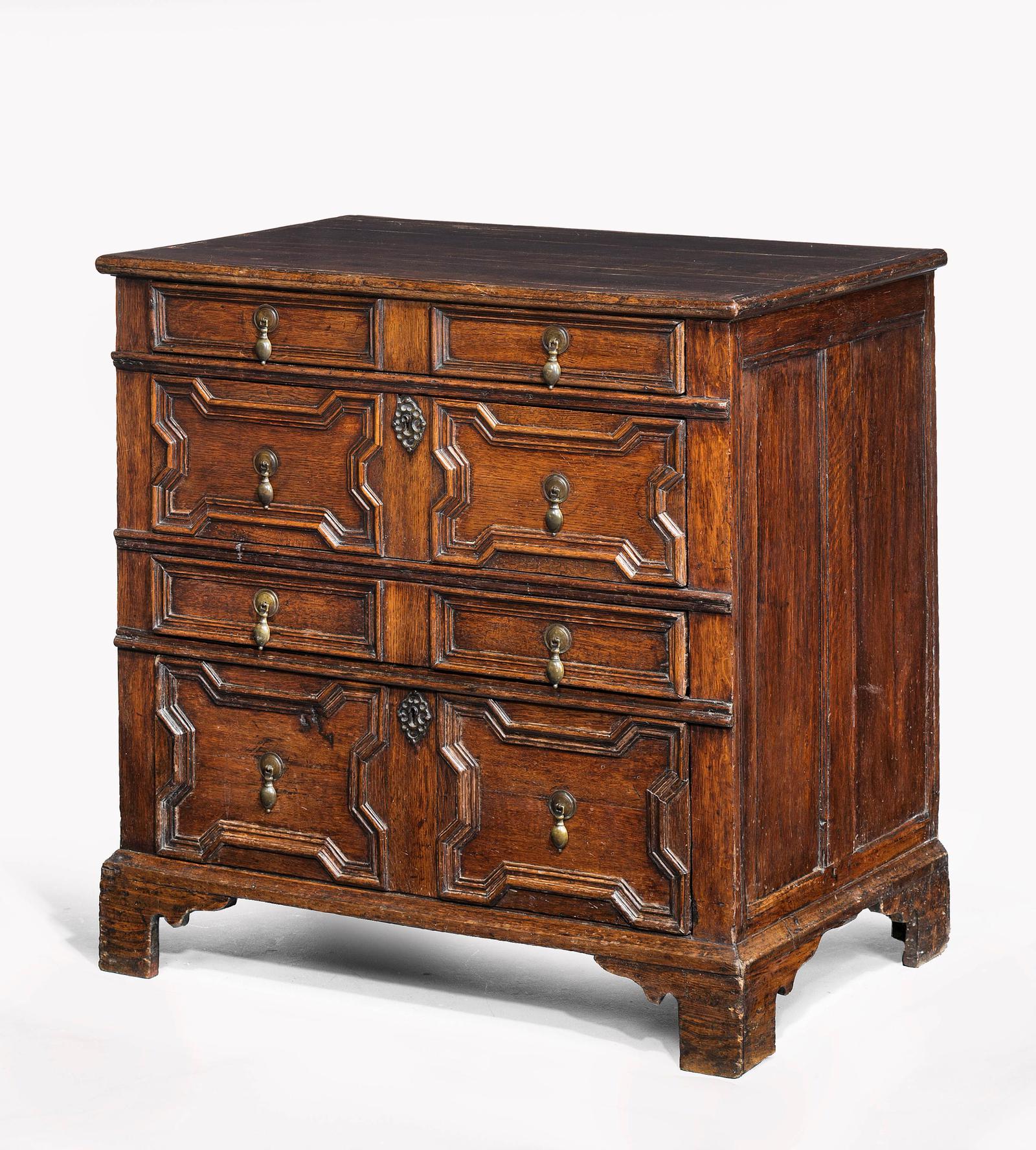James II Period Chest of Drawers with Geometrically Panelled Front