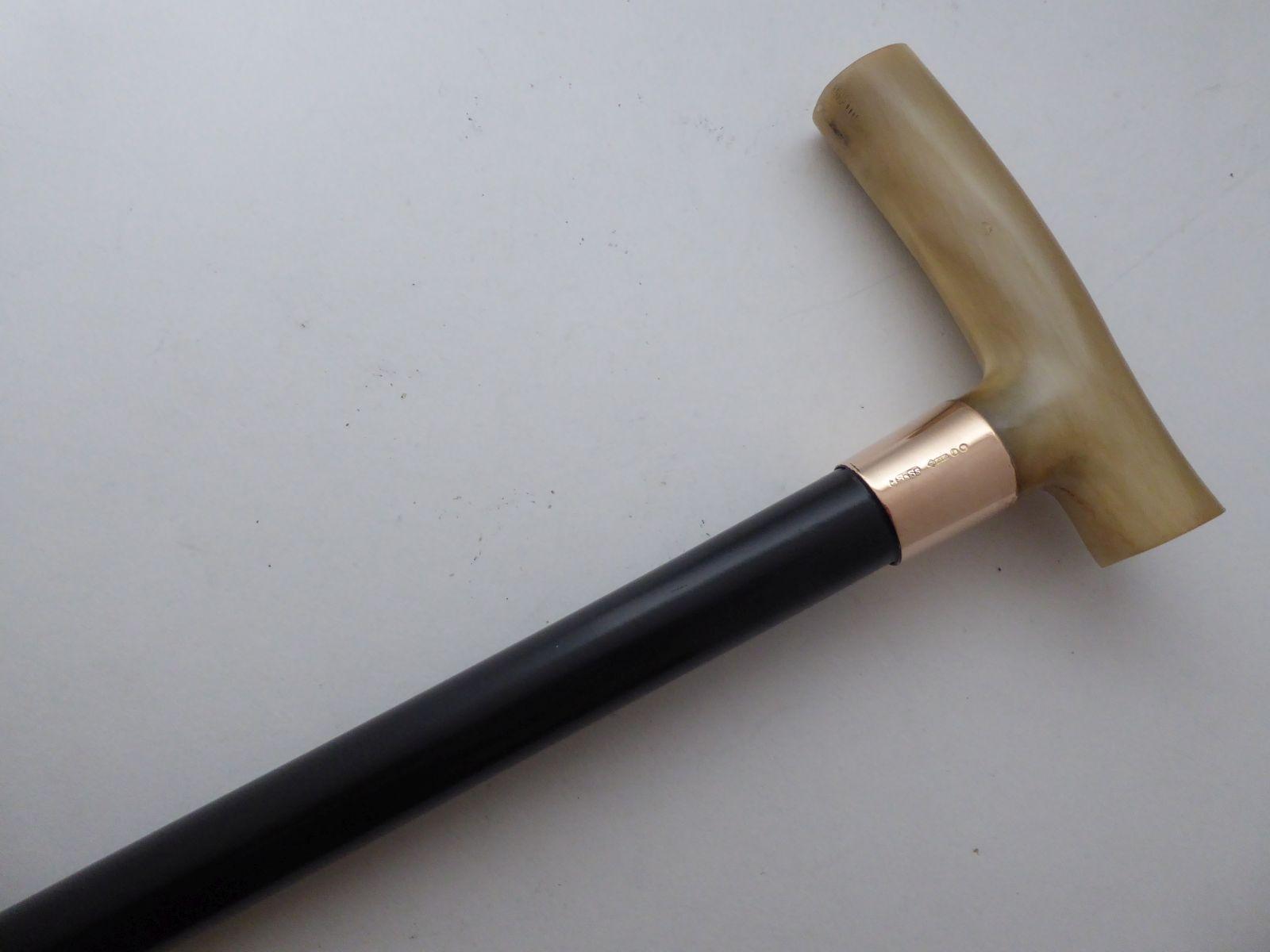 James Smith Walking Stick Cane 1924 Hallmarked 9ct Gold Collar Ebony Shaft Horn Handle