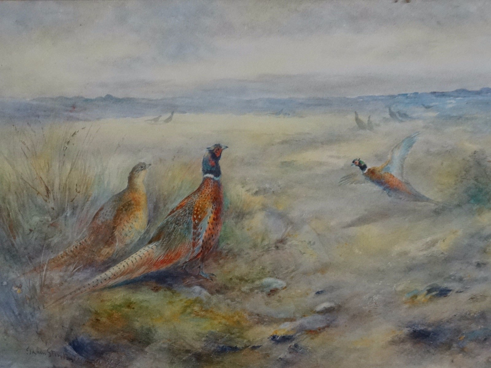 James Stinton (1870-1961) Worcester Porcelain Artist 'Pheasants in Landscape'