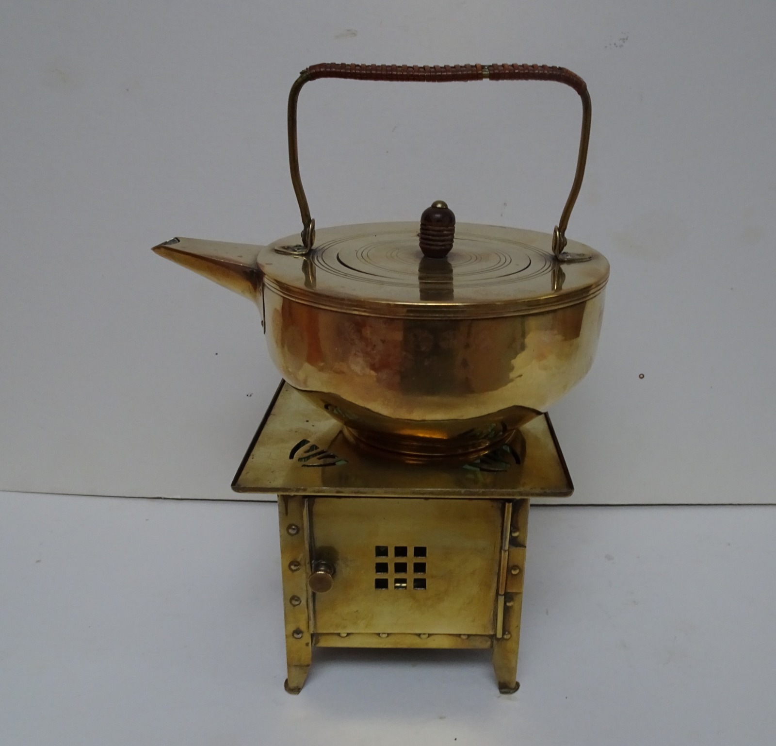 Jan Eisenloffel Brass Kettle on Stand with Spirit Burner. Secessionist. Early 20th Century