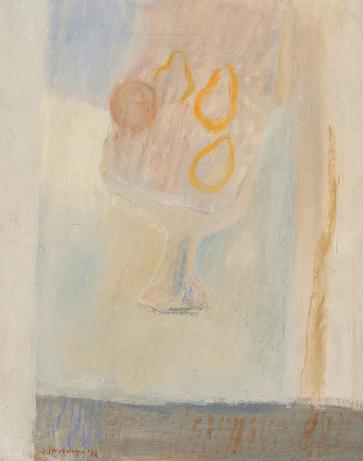 Jan Hoogsteyns (B. 1935) - Belgian 1972 Oil, Modernist Still Life with Pears