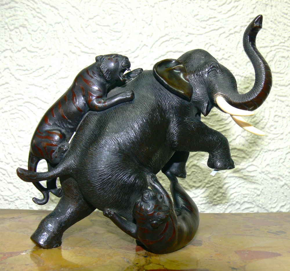 Japan / Tokyo Bronze Elephant & Tigers c.1890