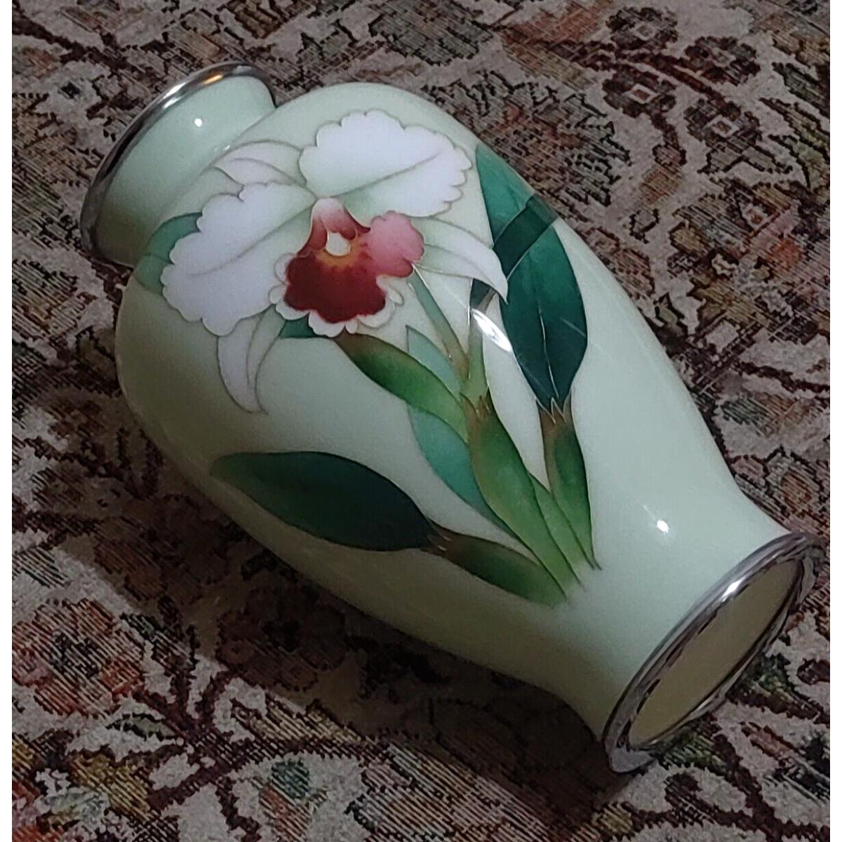 Japanese Ando Showa Sato Cloisonne Green Enamel Vase Vintage 20th Century