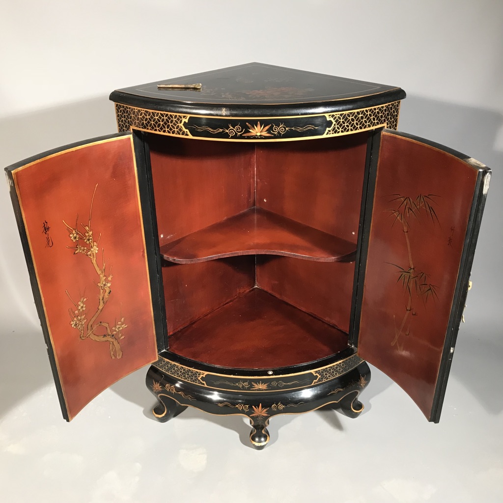 Japanese Black Lacquered Corner Cabinet with Scarlet Interior (1 of 1)