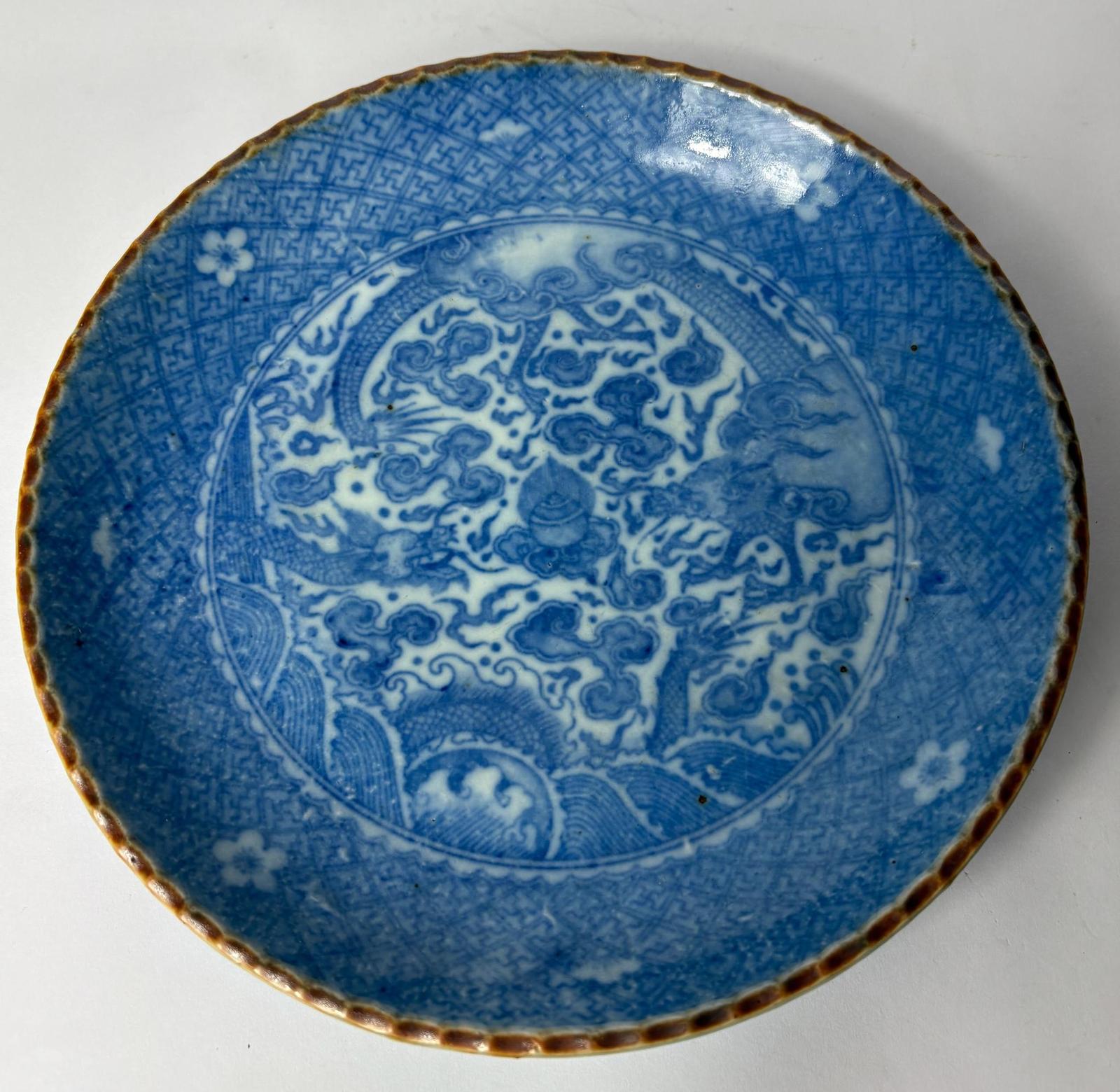 Japanese Blue & White Dragon Shallow Bowl- Arita/hizen Style, c. 19th Century