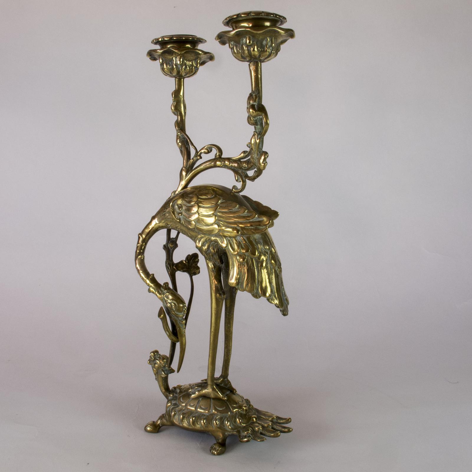 Japanese Bronze Candelabra Of A Crane On The Back Of A Turtle