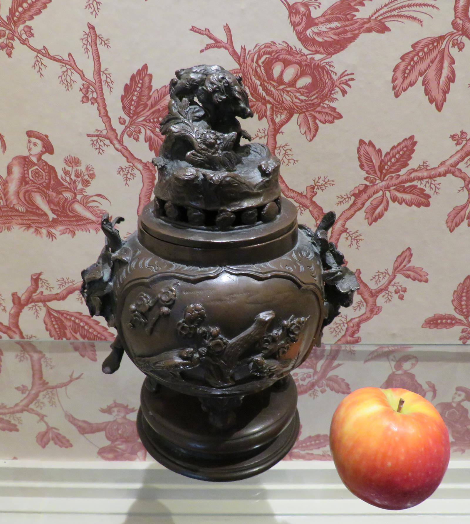 Japanese Bronze Censer & Cover with Kylin on a Rock on the Lid