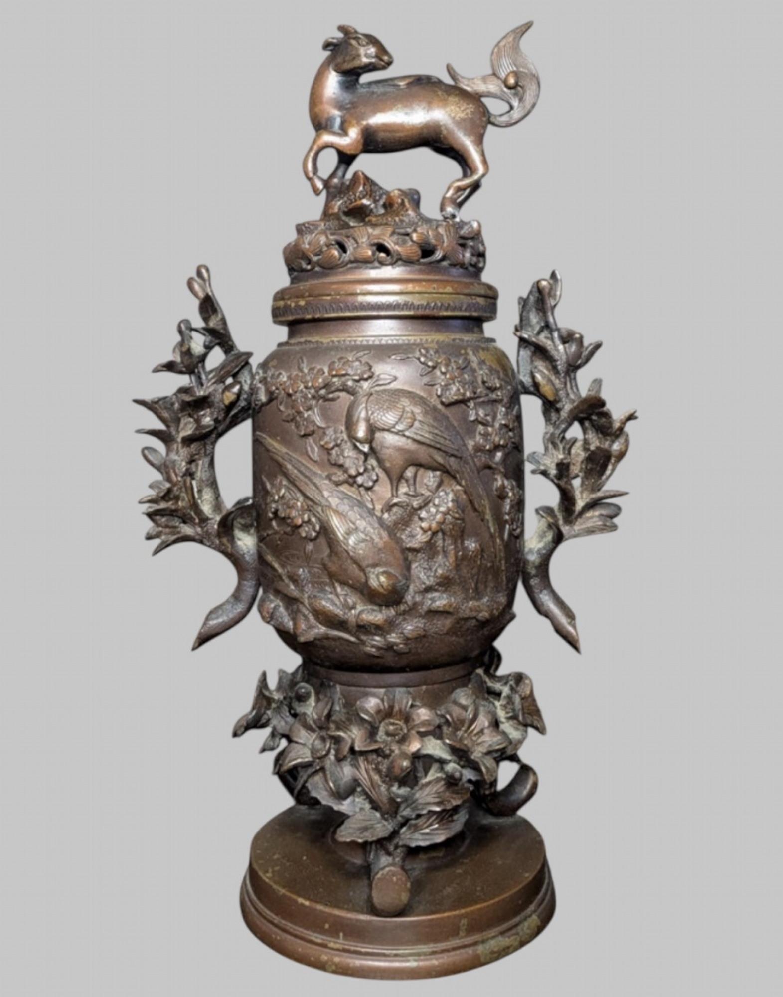 Japanese Bronze Incense Burner (Koro) with Goat Finial, Japan, Meiji Period (1868–1912) - Currently Stored in Haywards Heath in West Sussex