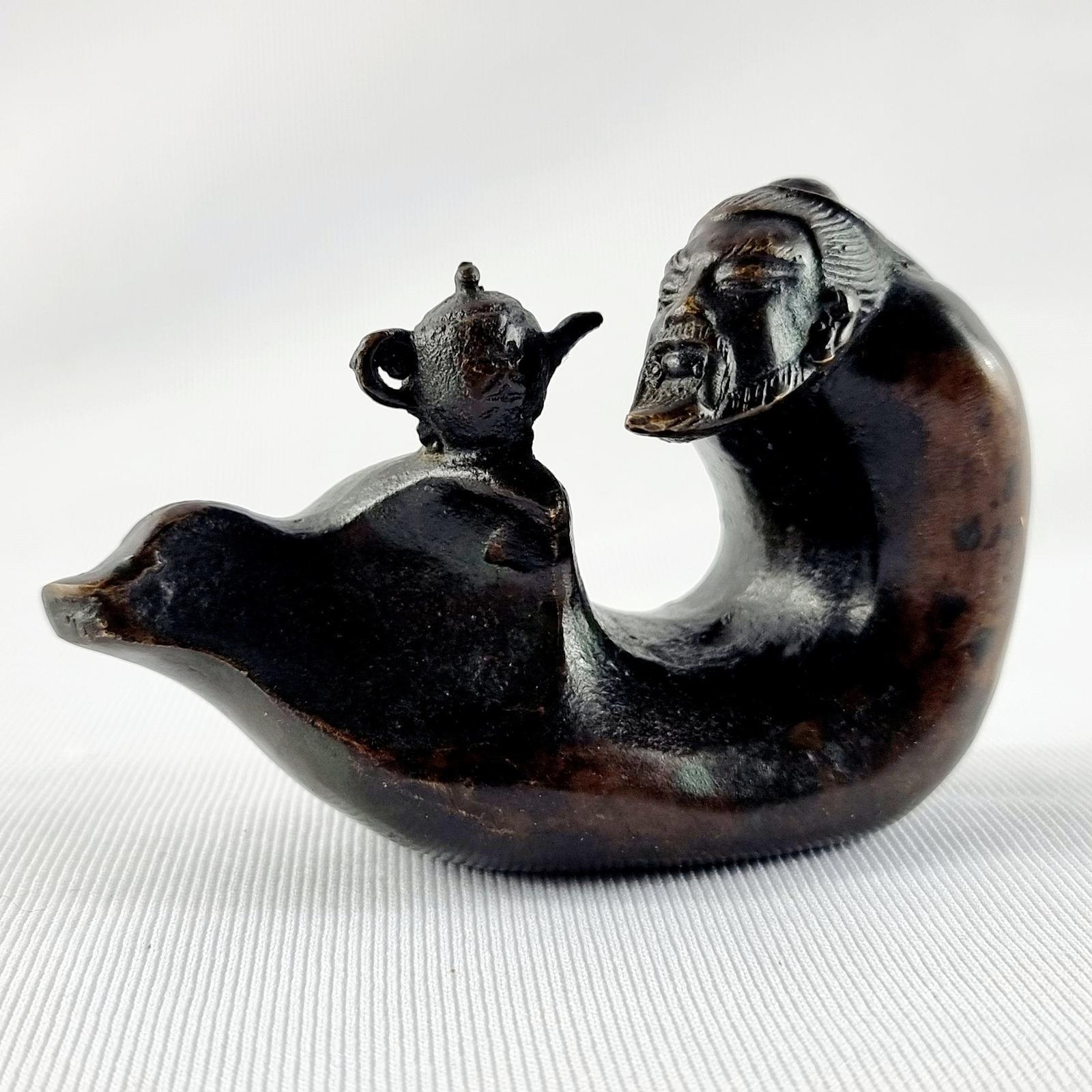Japanese Bronze Mythical Diety with Teapot, Character Marks
