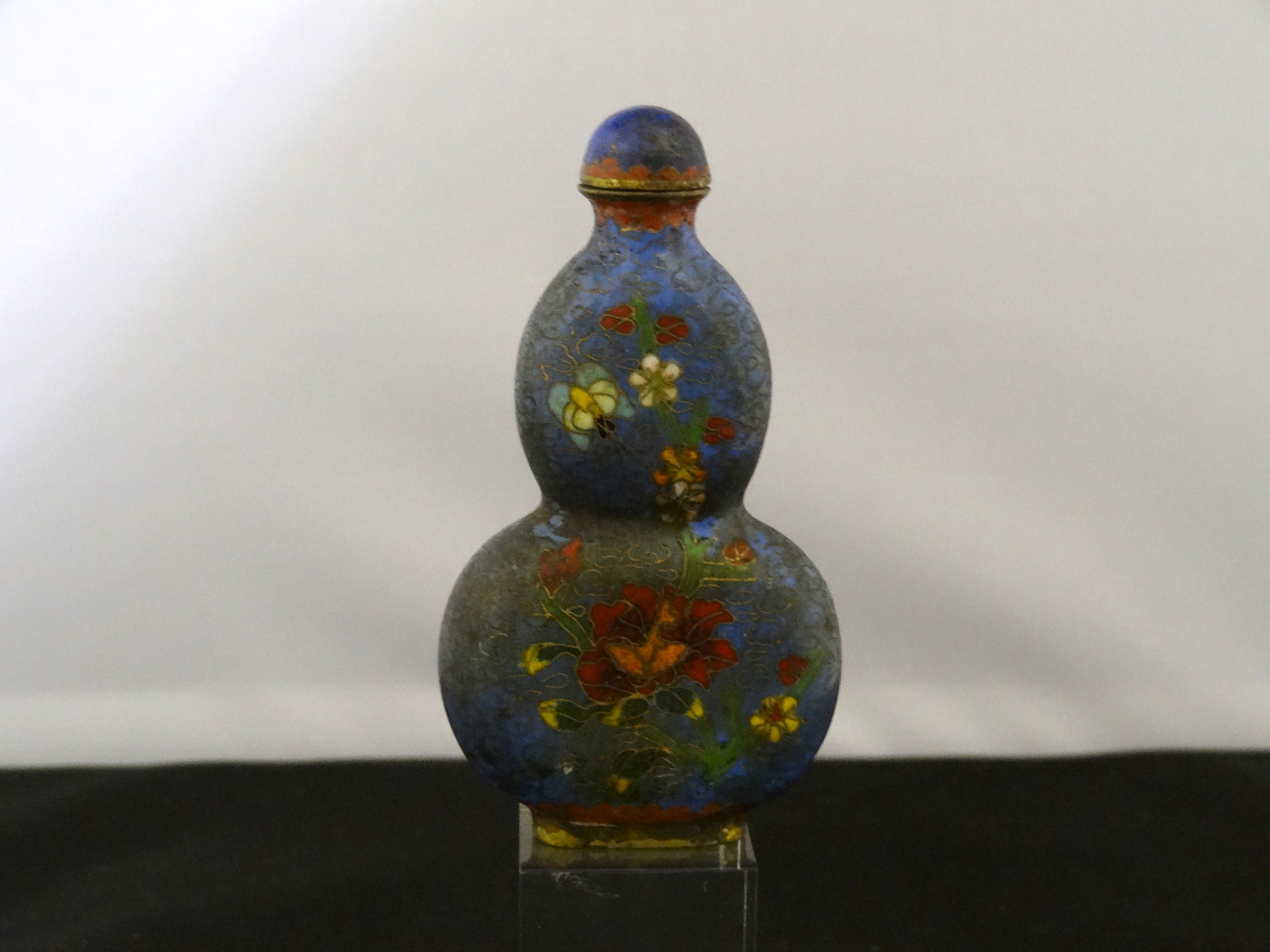 Japanese Cloisonne Enamel Snuff Bottle, Decorated with Lotus & Other Flowers c.1900