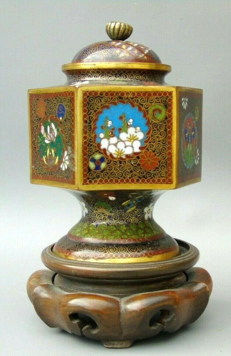 Japanese Cloisonne Lidded Vase on Hardwood Stand