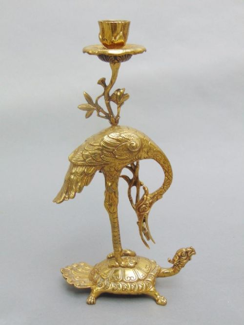 Japanese Crane Candlestick Meiji Polished Bronze (1 of 1)