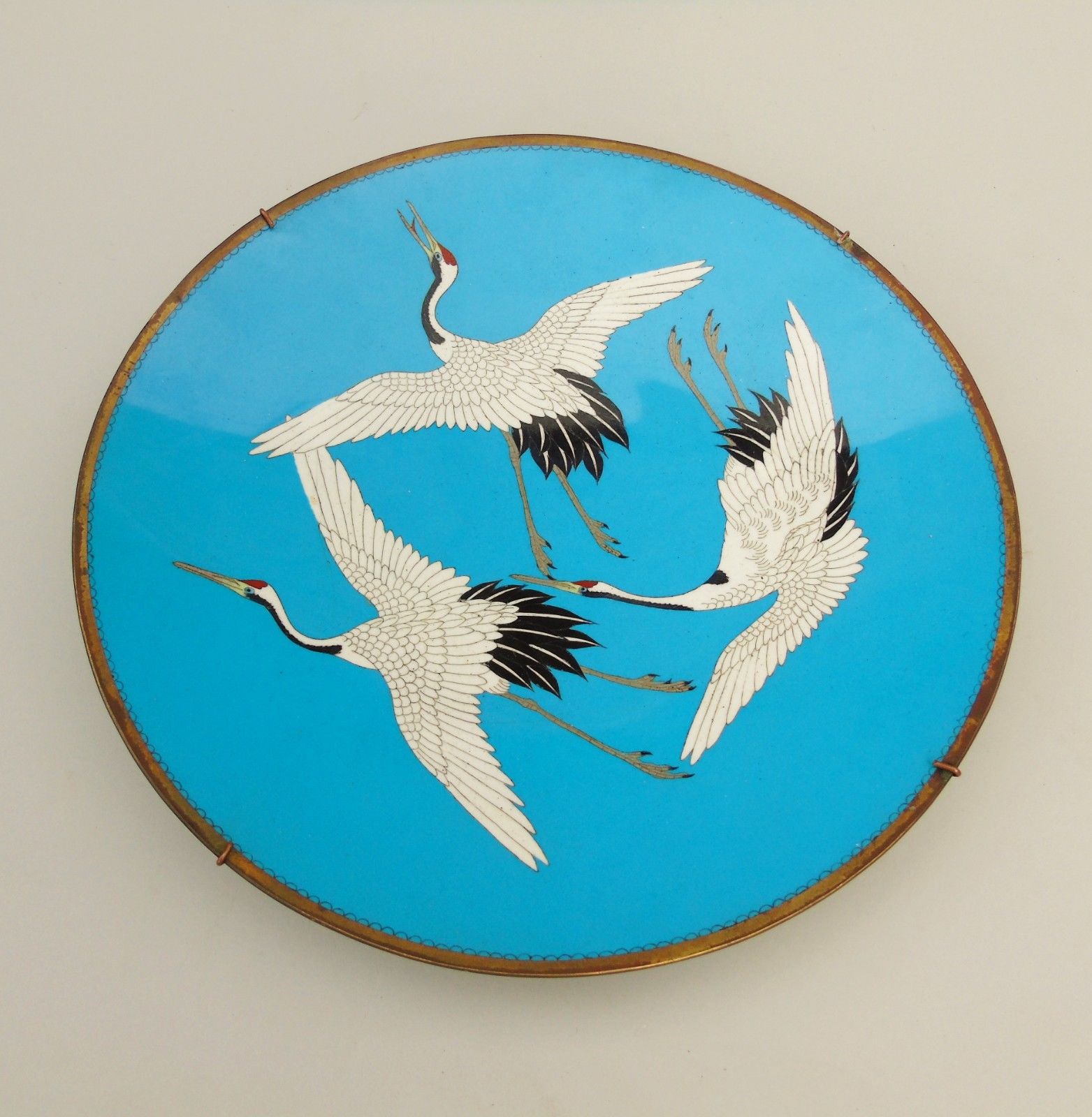 Japanese Meiji Cloisonné Charger Cranes c.1870 (1 of 1)