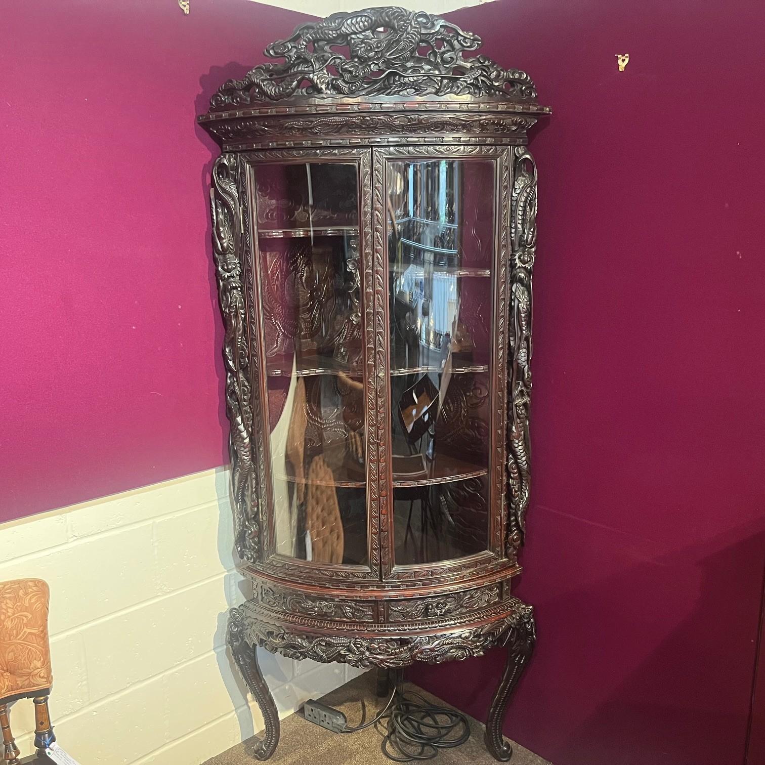 Japanese Meiji Period Carved & Lacquered Corner Cabinet