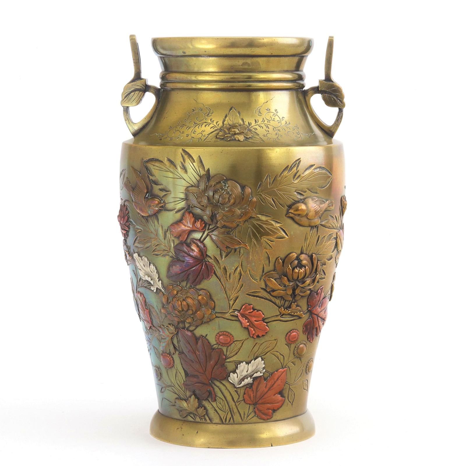 Japanese Meiji Period Large Bronze & Mixed Metal Vase c.1885