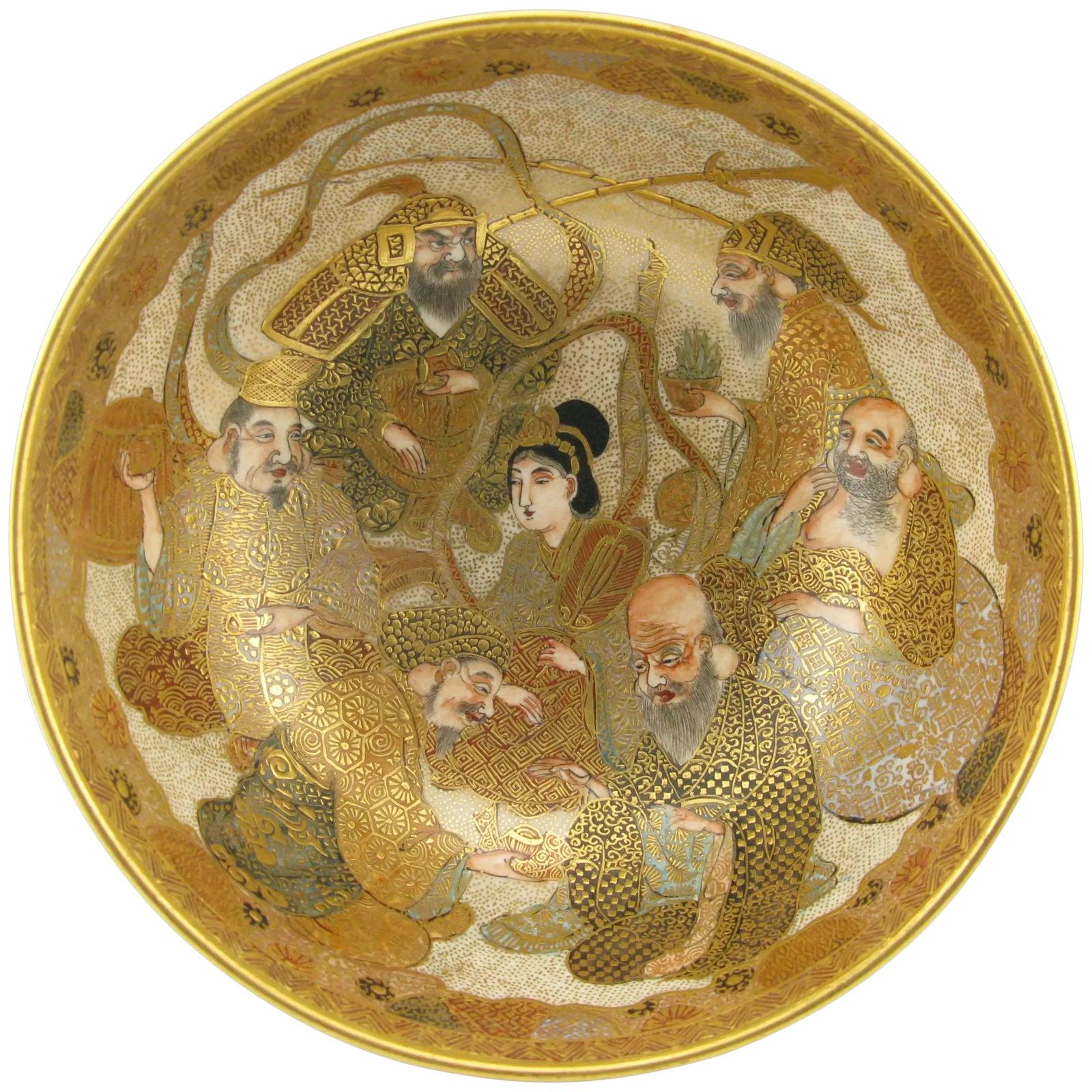 Japanese Meiji Satsuma Pottery Warriors Sages Bowl Kozan