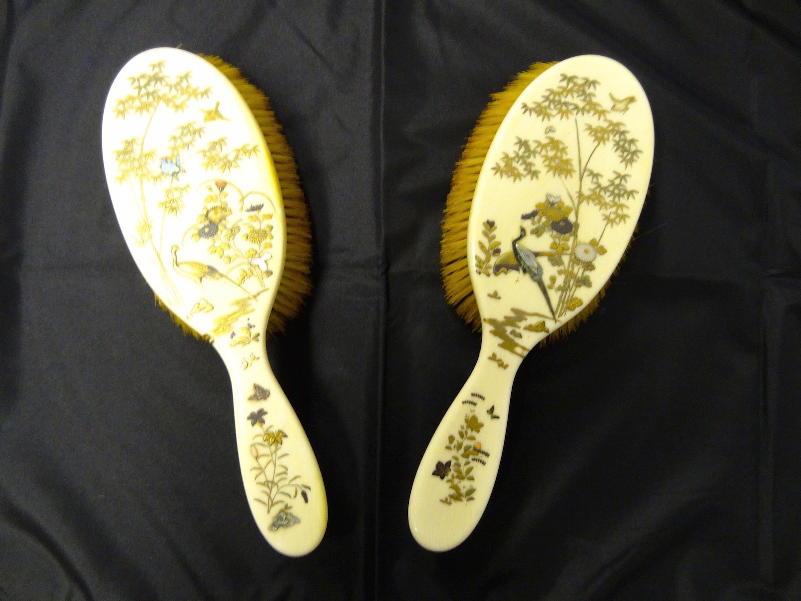Japanese Pair of Shibayama Hairbrushes, Unsigned, Meiji Period C.1868-1912