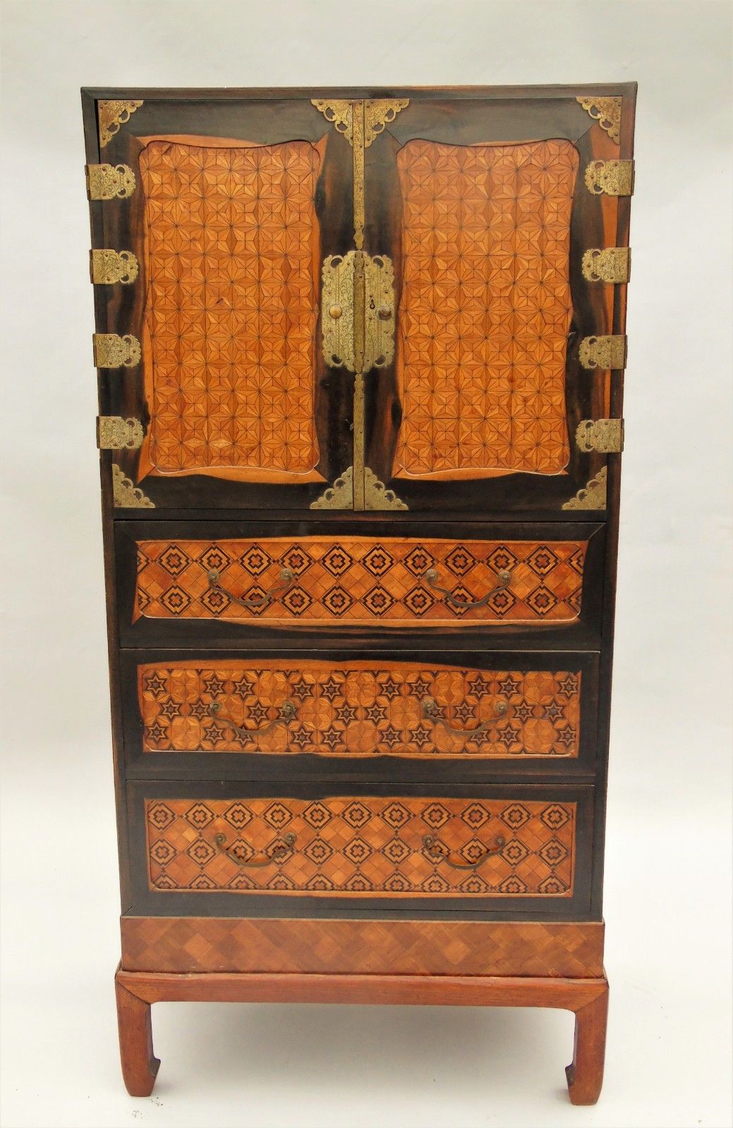 Japanese Parquetry & Brass Bound Cabinet Meiji c.1870