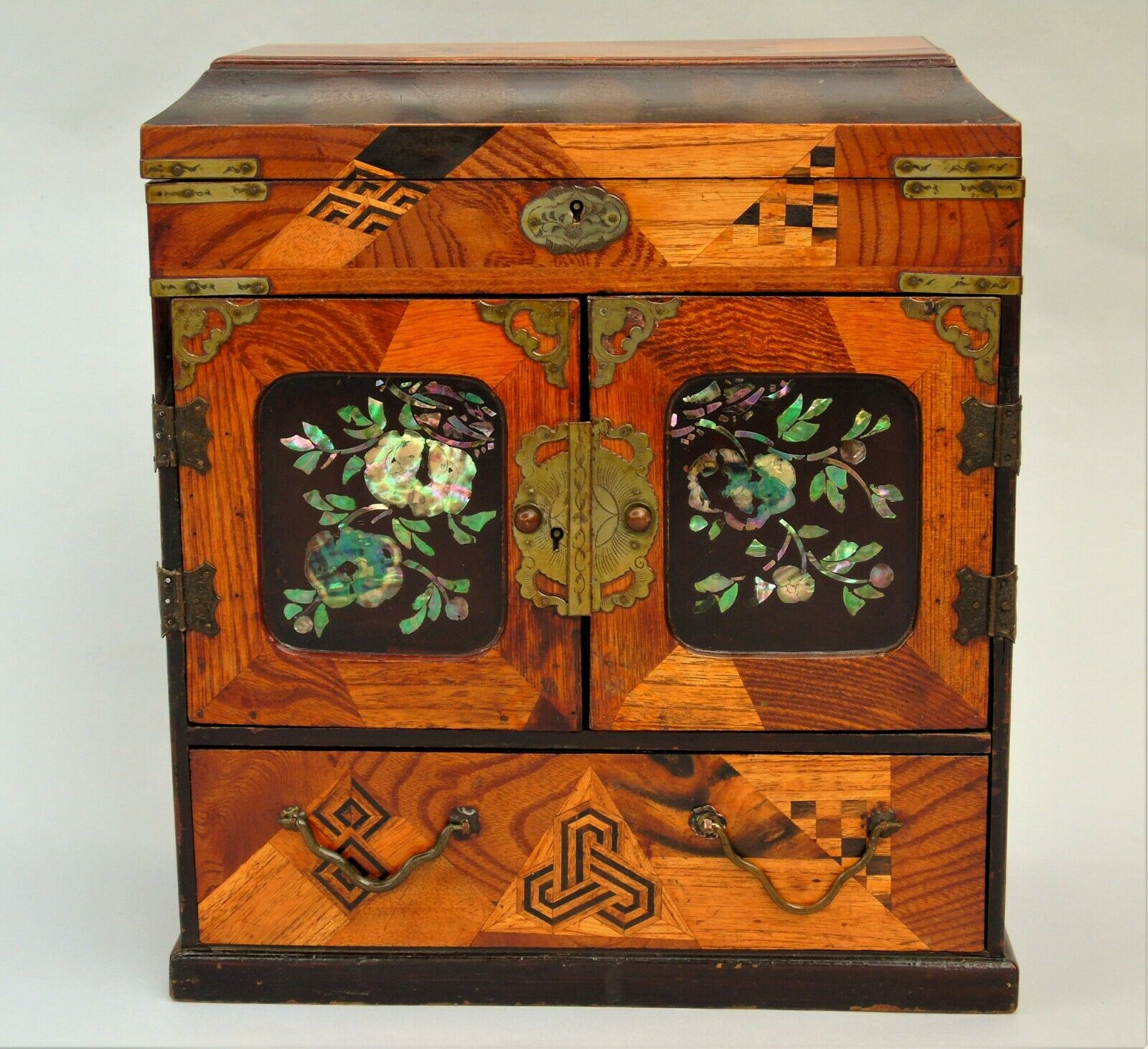 Japanese Parquetry & Mother of Pearl Table Cabinet Meiji c.1870