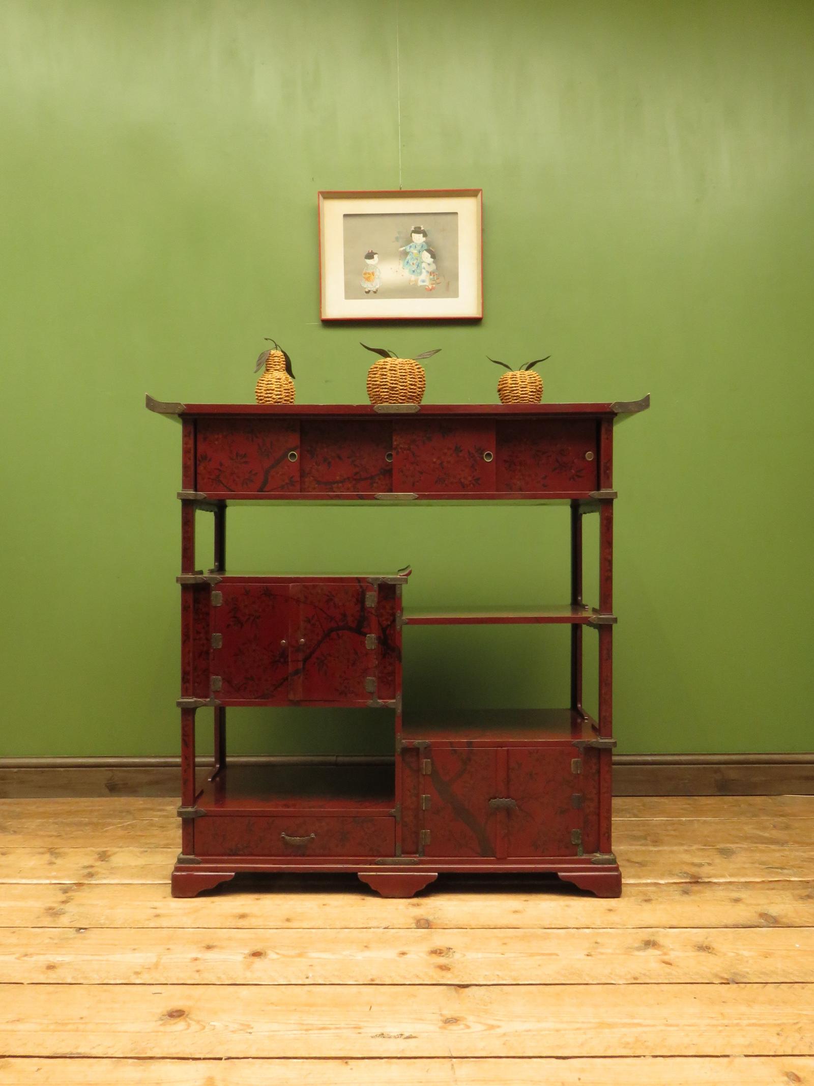 Japanese Red Lacquered Shodana Cabinet with Cherry Blossoms c.1880
