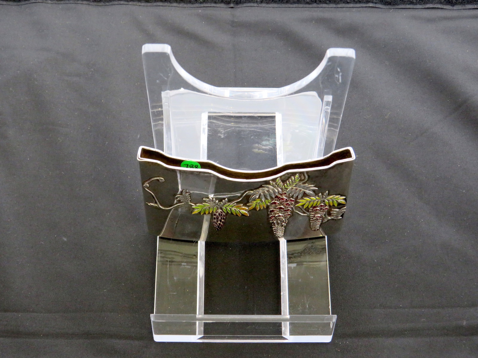 Japanese Silver Enamel Card Case, Applied Relief Decoration, Sanju Saku c.1900