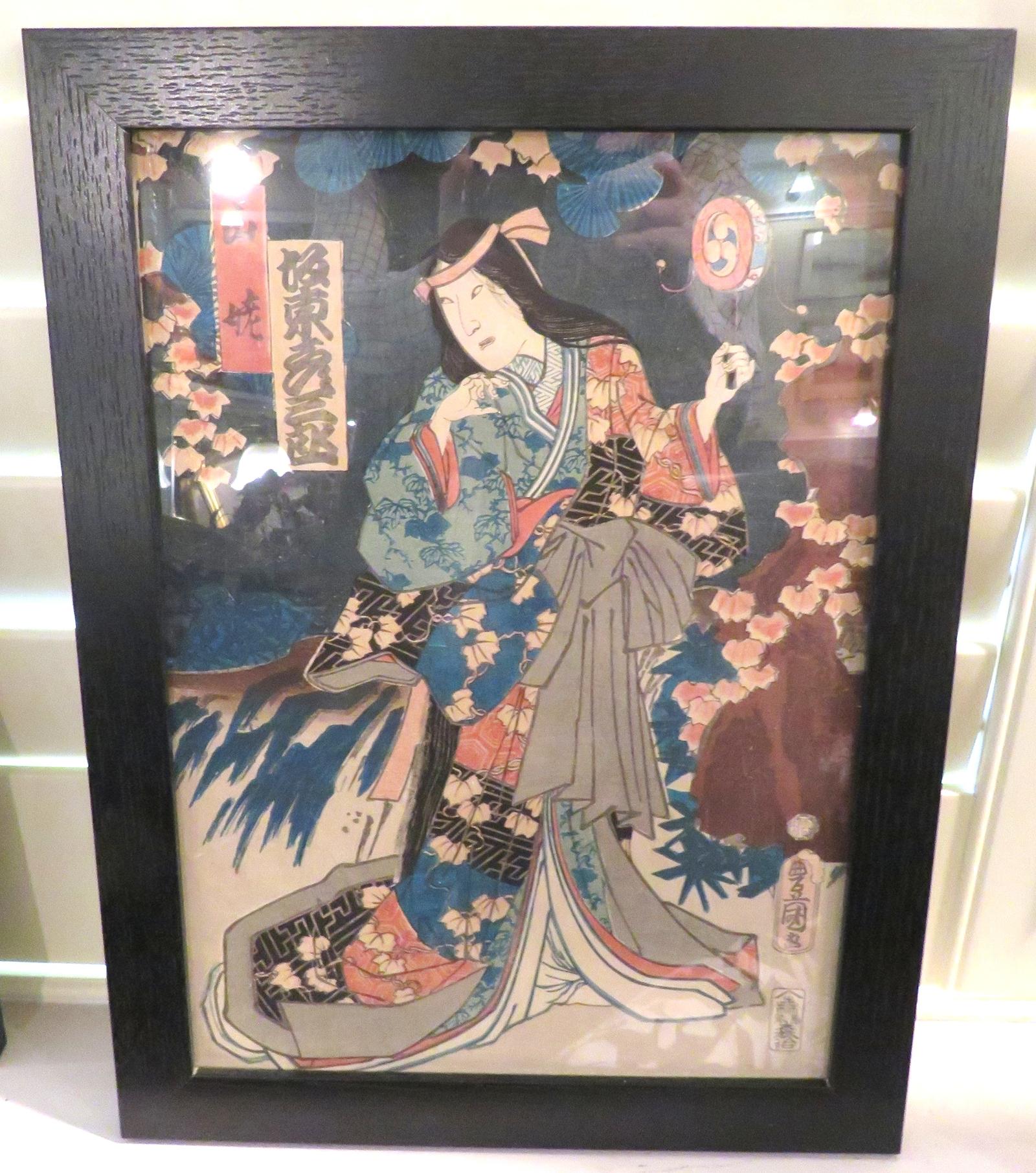 * Framed Japanese Ukiyo-e Woodblock Print
