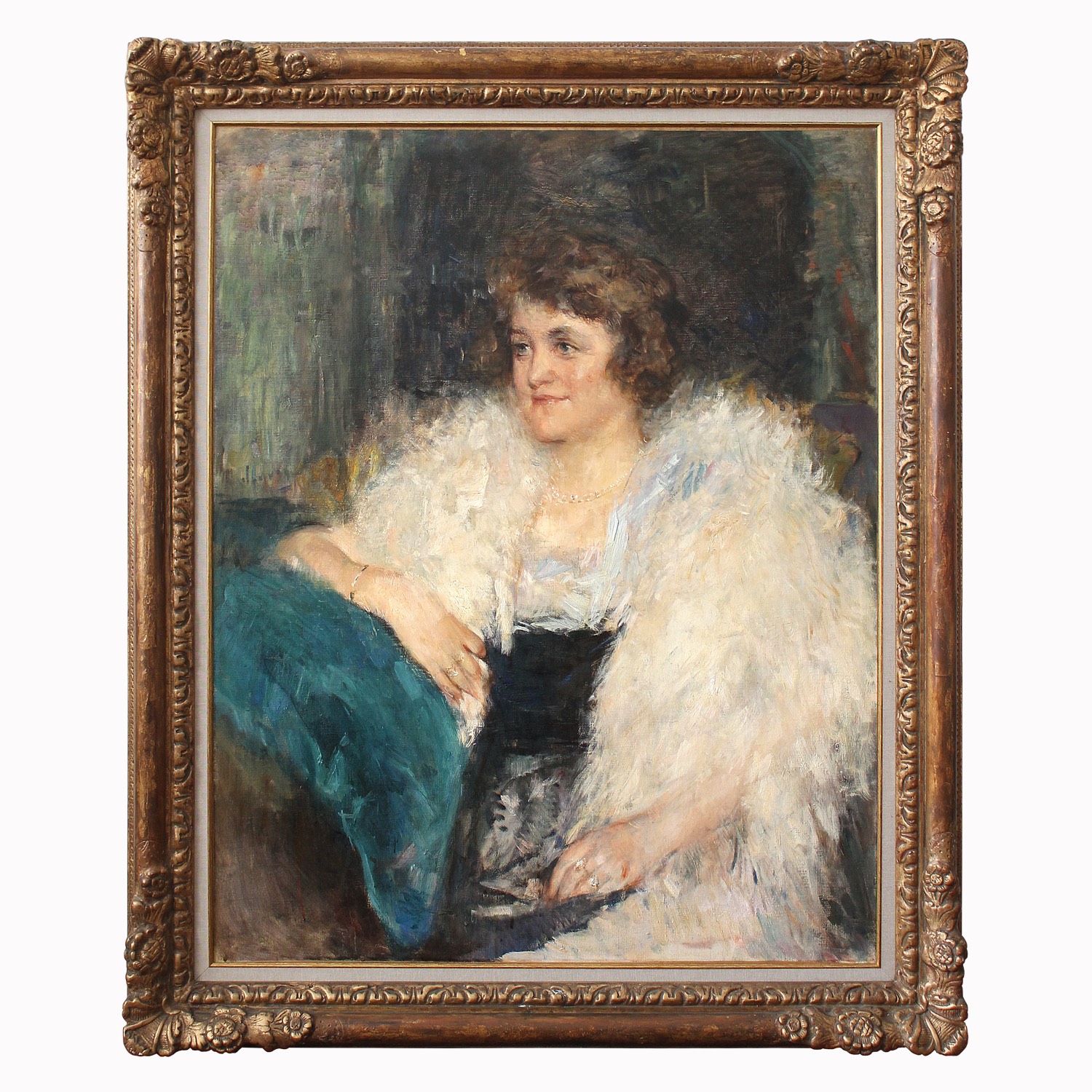 Jean Laudy, Portrait of Madame Pierrard, Large Oil Painting