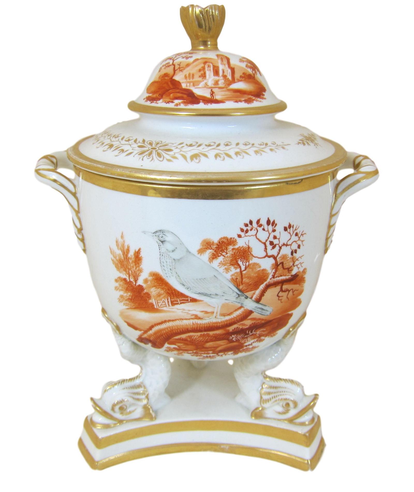 Job Ridgway & Sons Porcelain Ice Pail & Lid With Named Birds