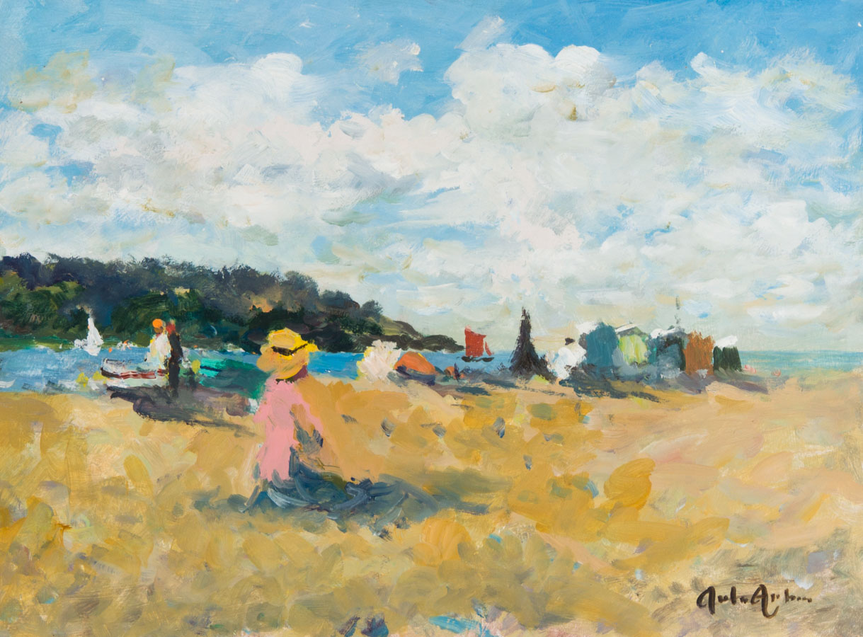 John Ambrose Rsma - Signed English Oil, Beach Scene On a Summer's Day
