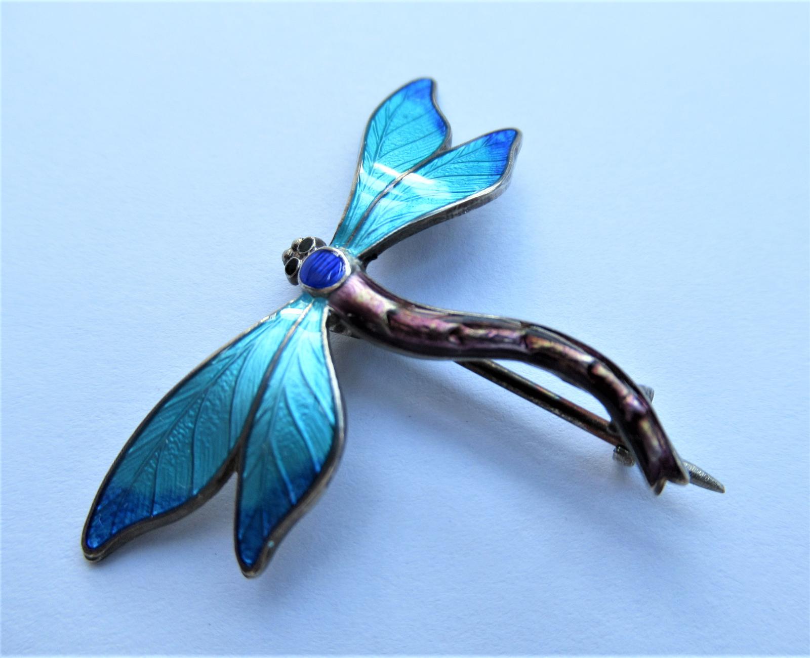 John Atkins & Son, JA&S, Silver & Enamel Dragonfly Brooch, Birmingham 1917