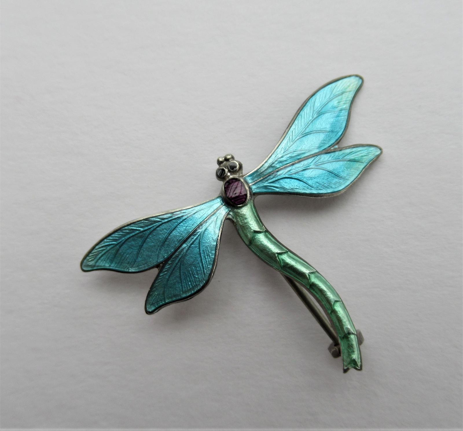 John Atkins & Son Silver & Enamel Dragonfly Brooch, 1916