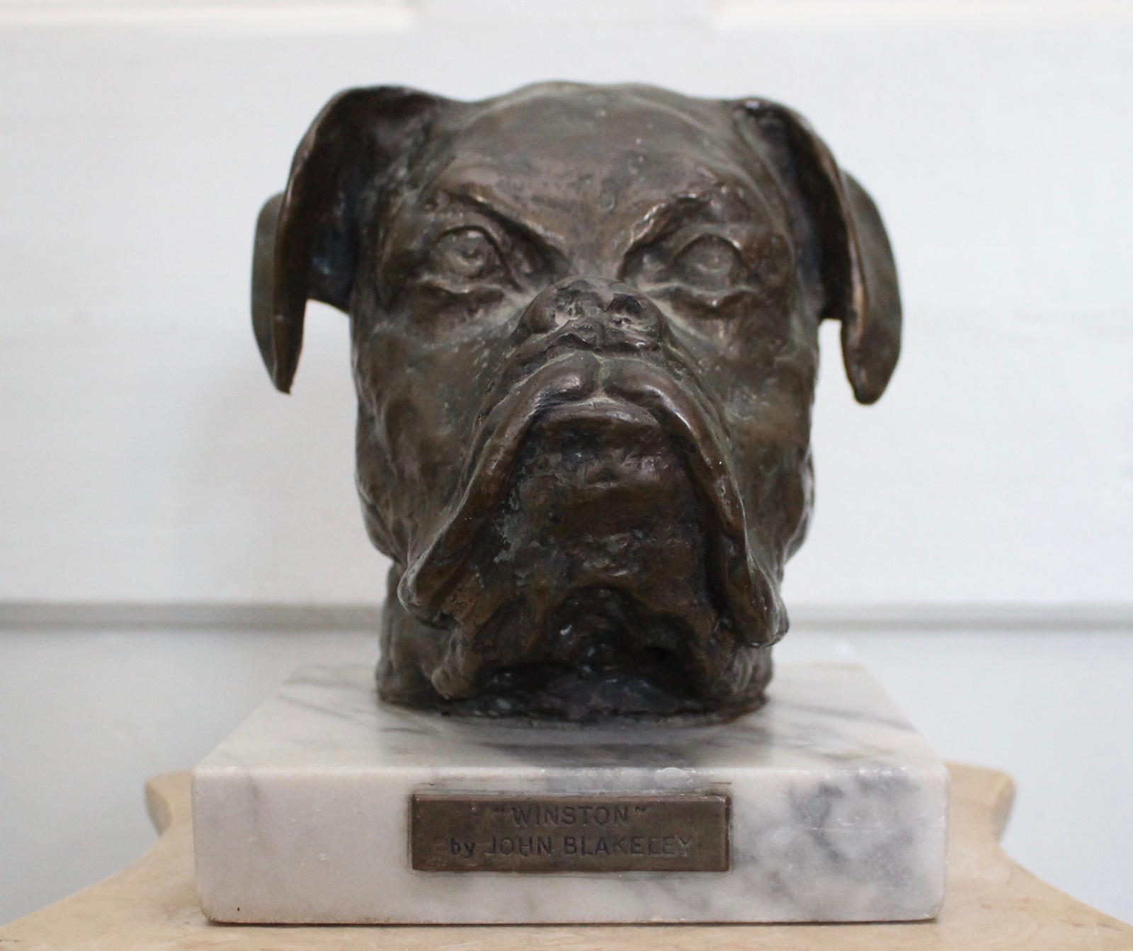 John Blakeley, Superb Solid Bronze Boxer Dog, Marble Socle, Signed & Inscribed