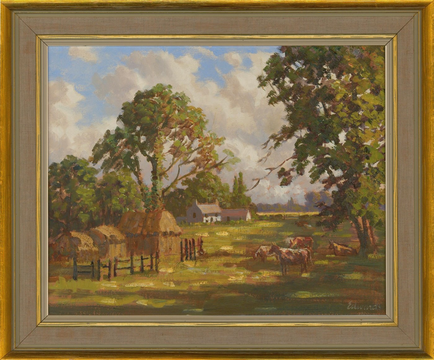 John Colin Edwards - Signed Contemporary English Oil, Stud Farm in Summer
