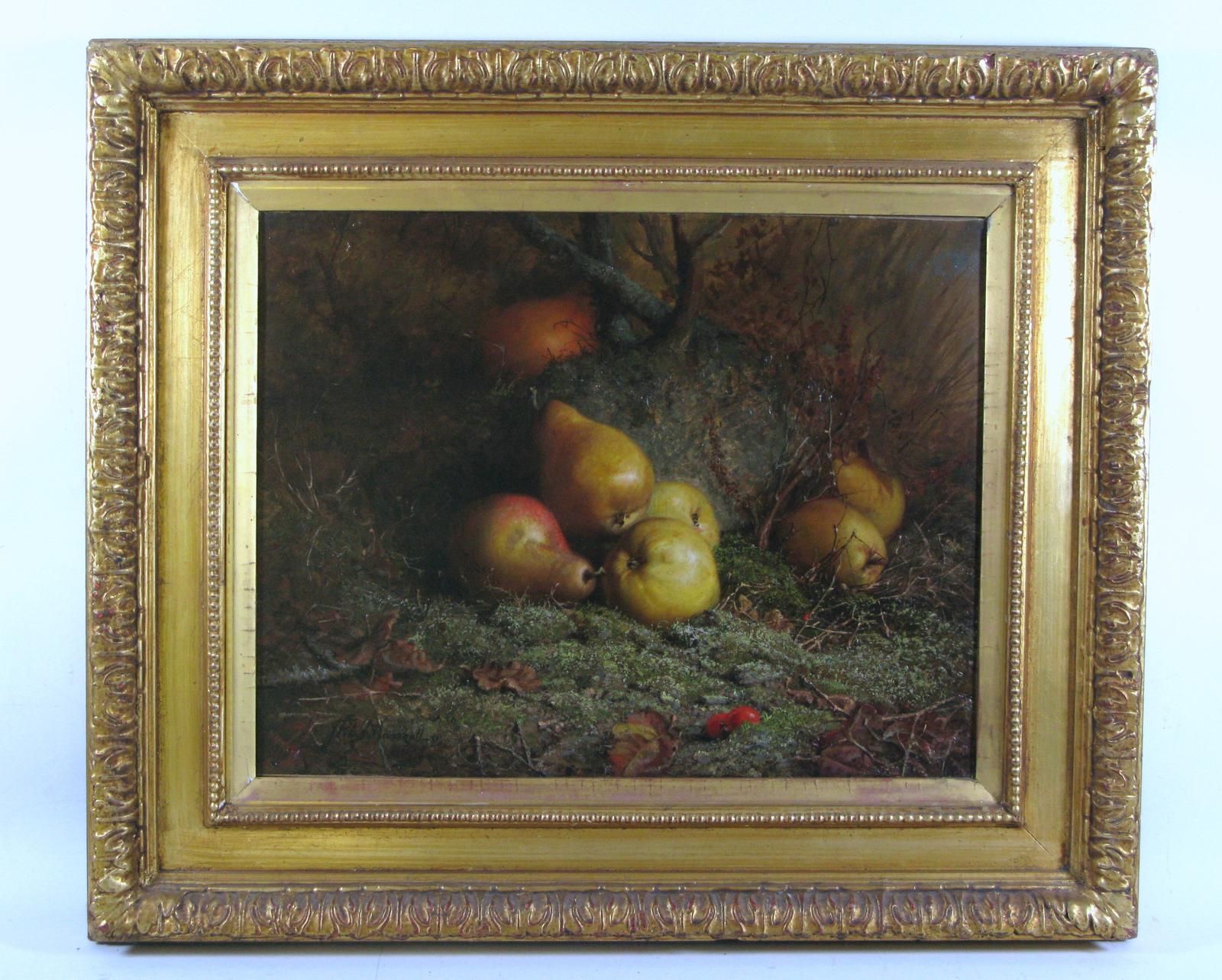 John Fitz Marshall RBA (british 1859-1932) Still Life of Pears in Woodland Oil on Canvas
