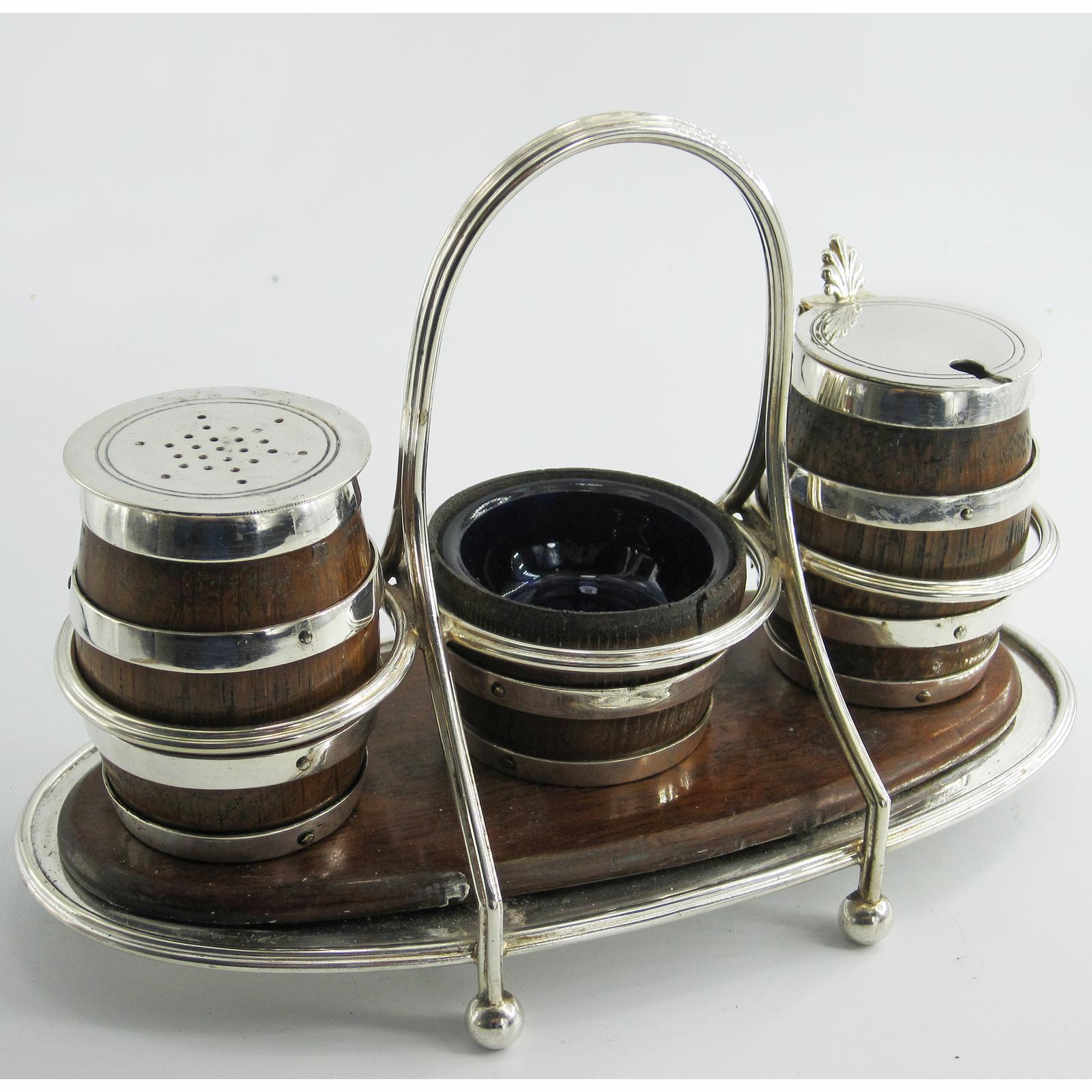 John Grinsell & Son Victorian Oak & Silver Plated Condiment Set