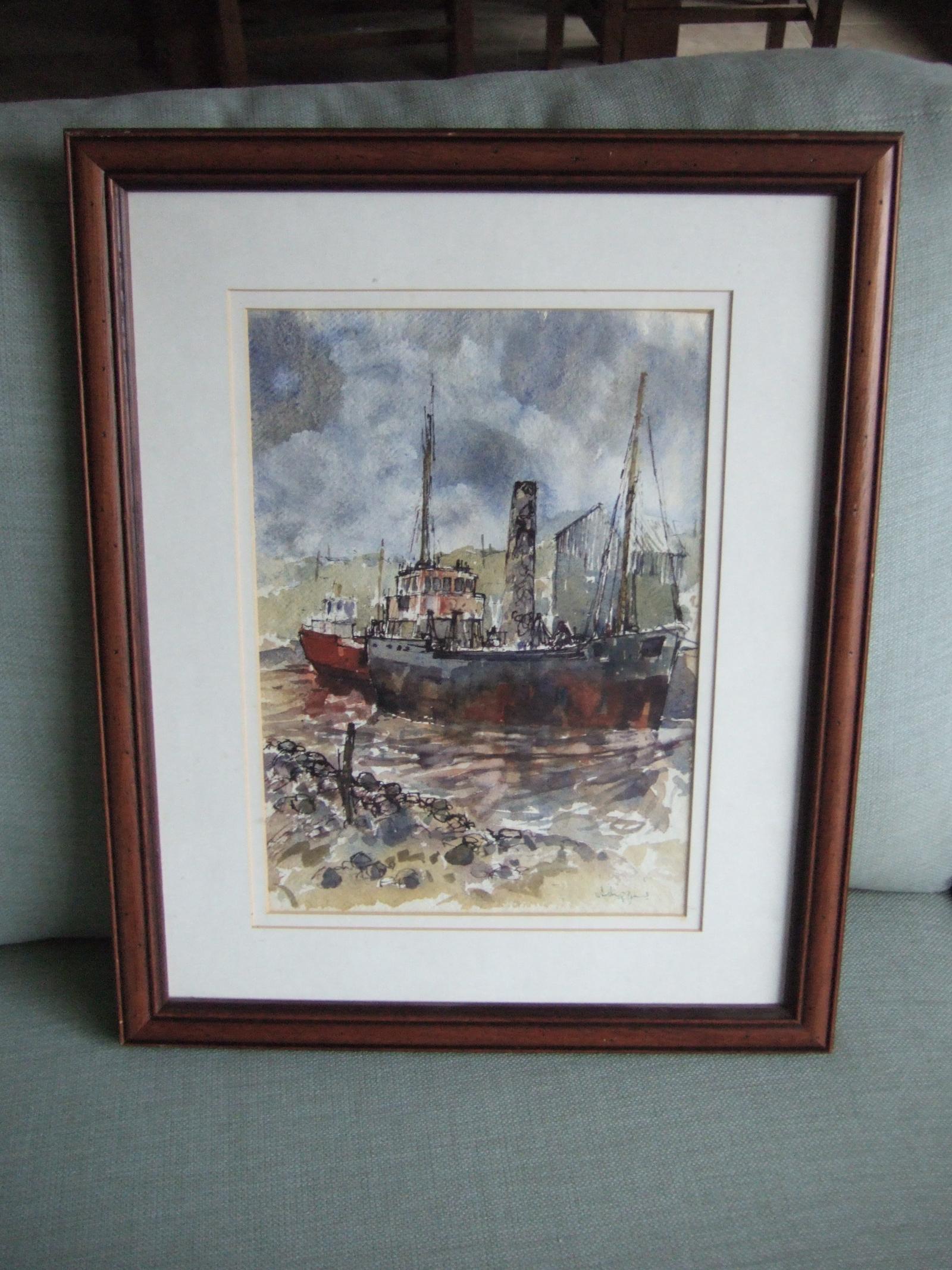 John Higgins (b.1934) Watercolour of Boats at Hayle, Cornwall (1 of 4)