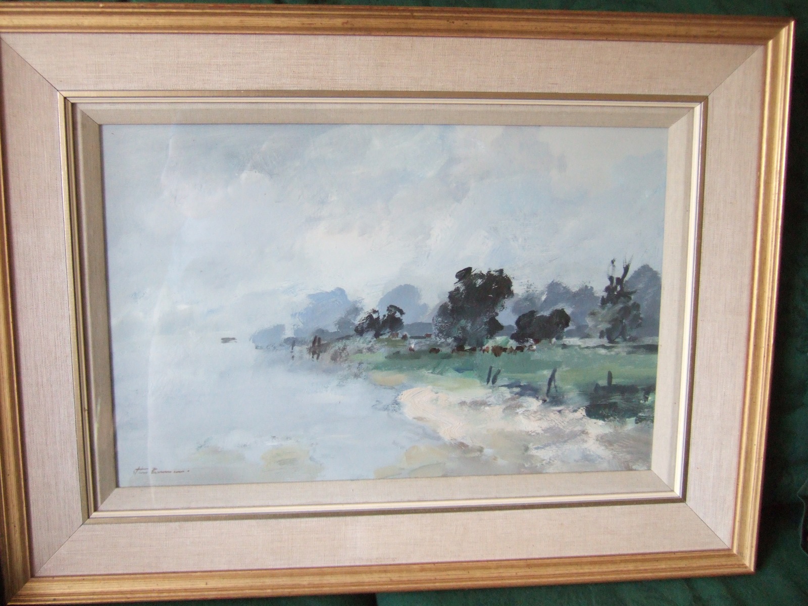 John Reginald Burman Oil on Board 'Cattle by the River' (1 of 4)