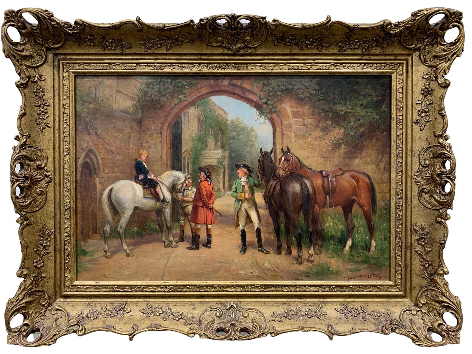 John Sanderson Wells Oil Painting Horse Riding Country Scene