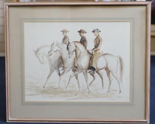 John Skeaping - Three Spanish Horseman - Watercolour (1 of 2)