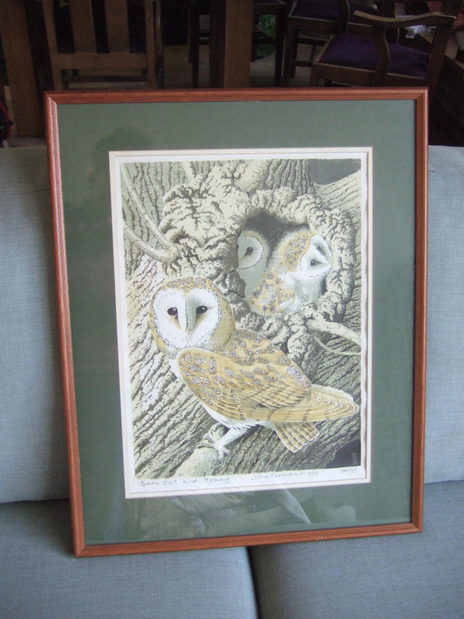 John Tennent (b.1926): Screenprint "Barn Owl and Young"