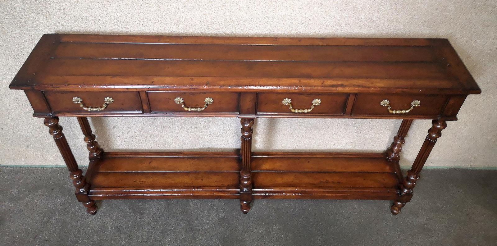 Jonathan Charles Narrow Four Drawer Antique Walnut Console Table