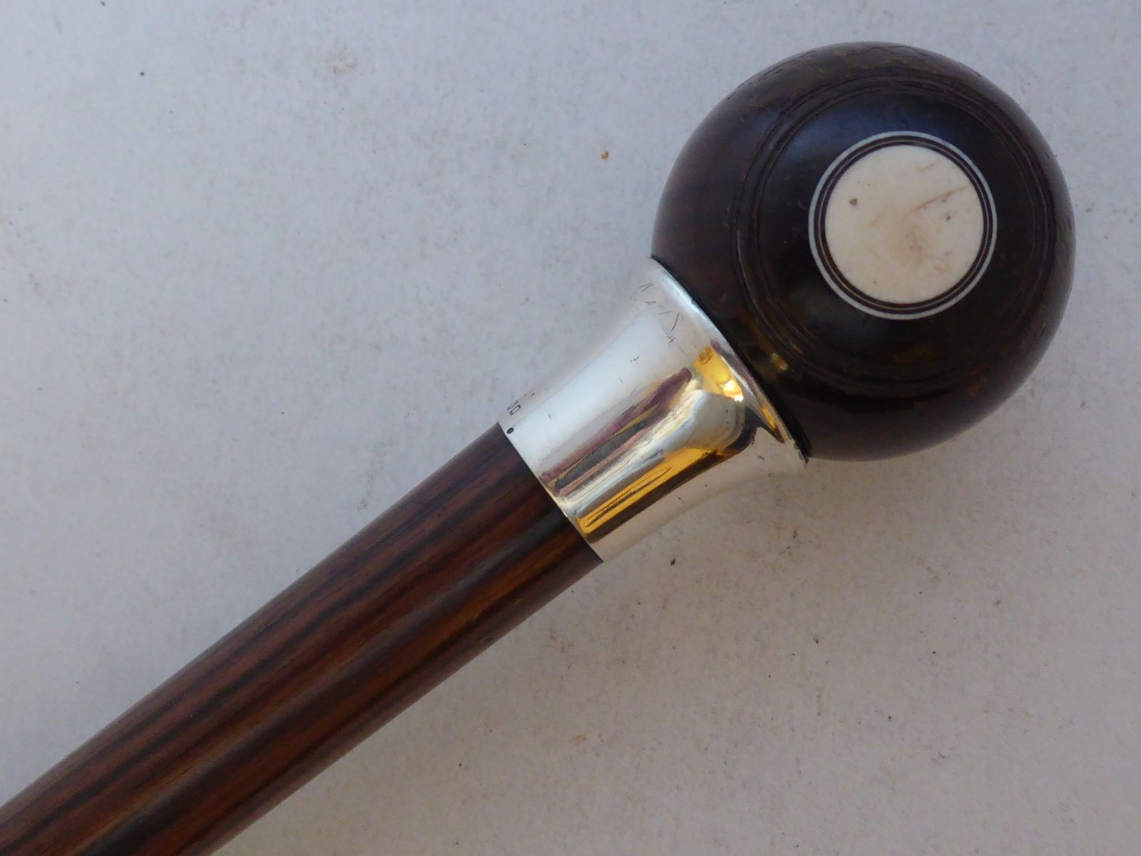 Jonathan Howell Bowling Ball Walking Stick Cane London 1923 Hallmarked Solid Silver