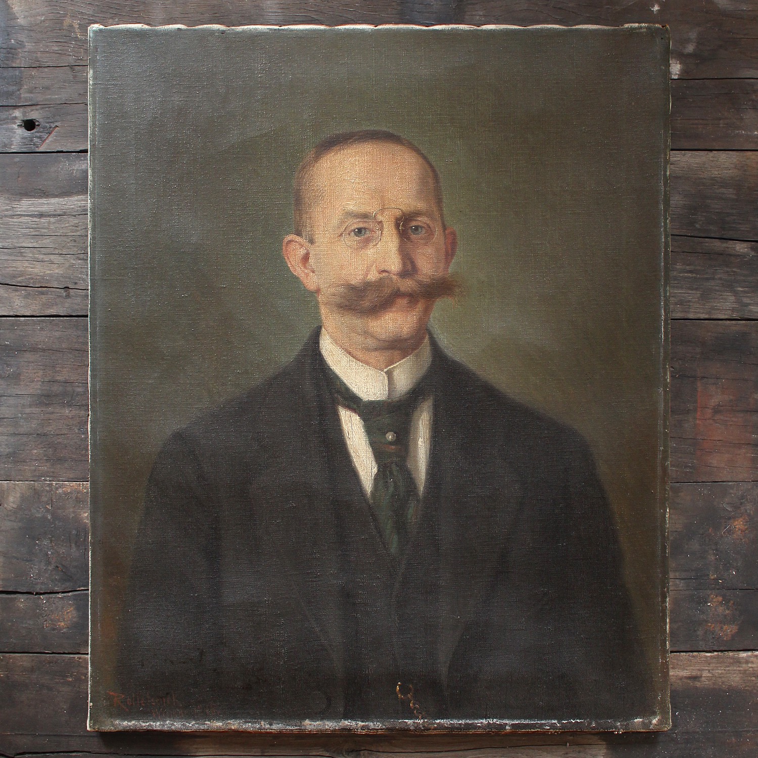 Josef Rolletschek, Portrait of a Gentleman with a Walrus Moustache, Antique Oil Painting