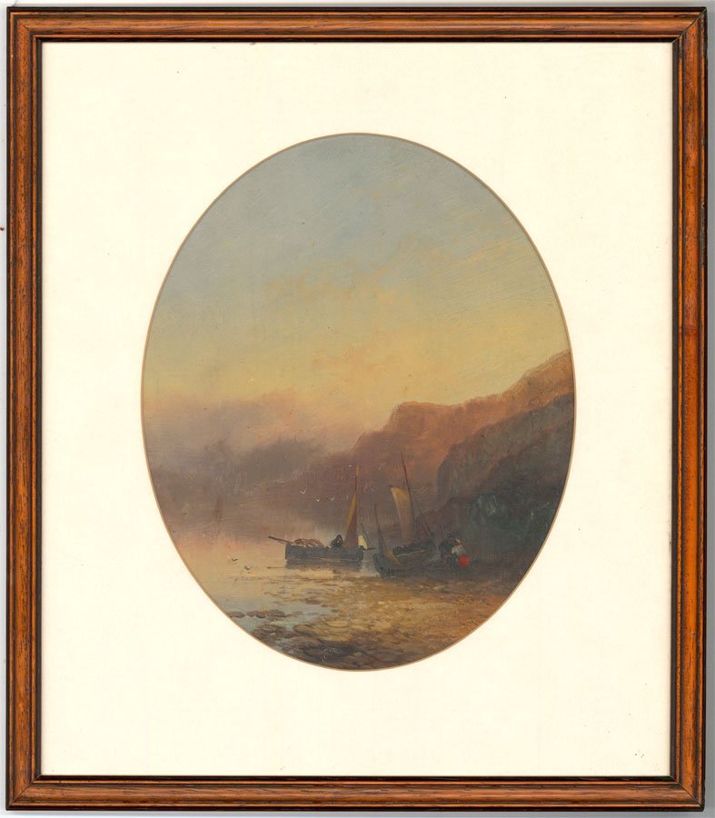 Joseph Horlor - 1876 Oil, Coastal Scene with Figures & Boats